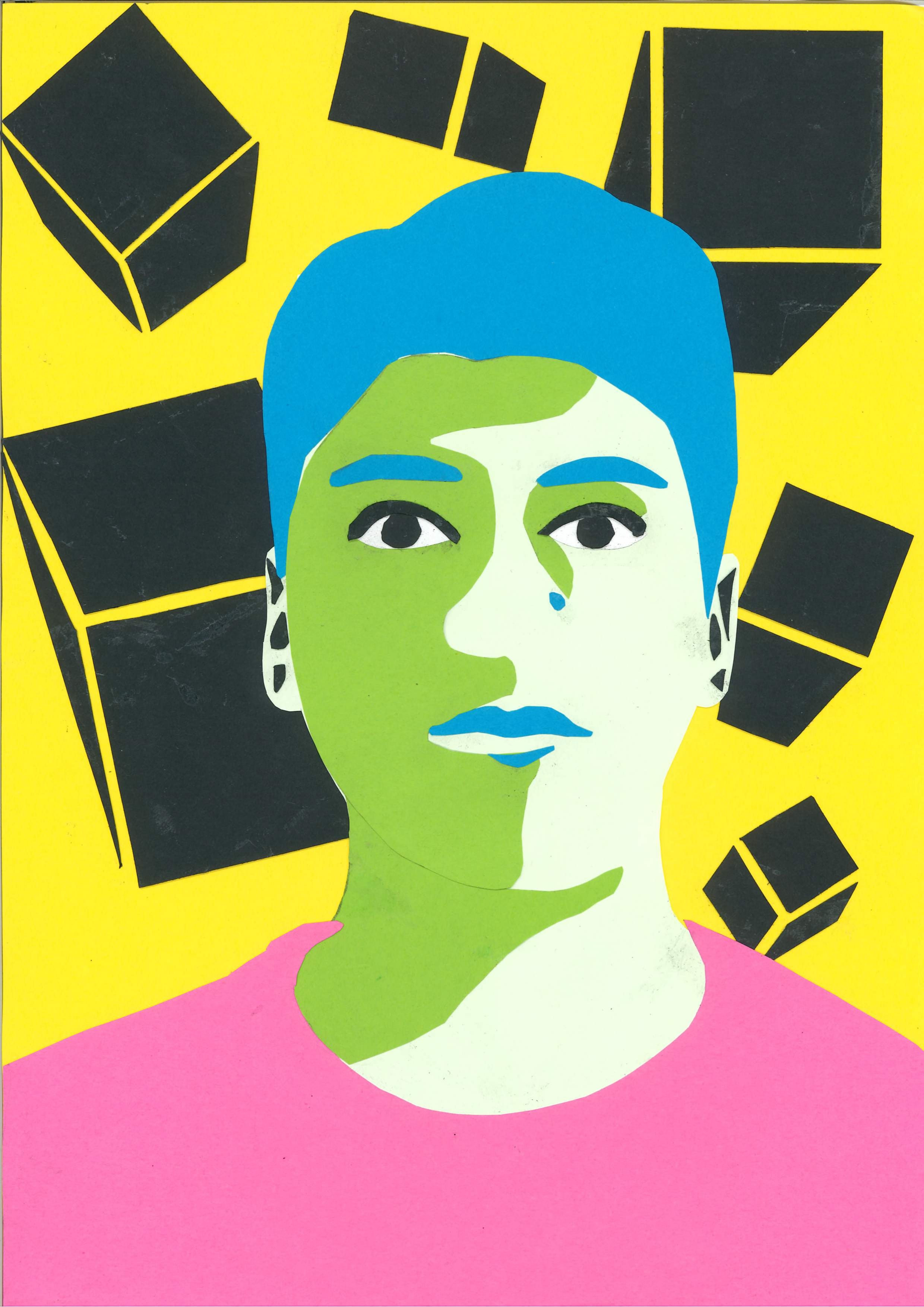 Je me suis inspiré du mouvement artistique Pop Art pour réaliser mon autoportrait sous forme de collage.